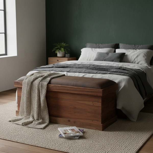 The Elm Kiaat Blanket Box is a beautifully crafted storage solution that combines classic design with practicality. Made from premium Kiaat wood, this blanket box features a sturdy construction with bent edging that enhances its timeless appeal. The leather lid adds durability and a luxurious touch, making it a versatile addition to any traditional or classic interior.