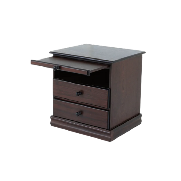 - Characteristics: Features two drawers, a small open shelf and a sliding out tray.