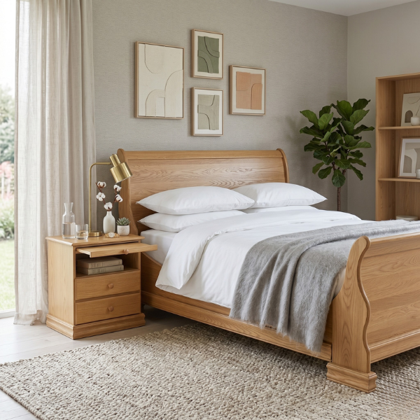 Sleigh Oak Wood Bedside Pedestal 600mm