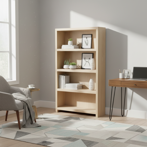 The GEO Oak Bookshelf brings rustic charm to modern spaces with four open shelves in natural oak, ideal for stylish, everyday storage and display.