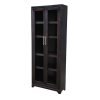 - Storage: Five shelves. Shelves are adjustable. Two glass doors.
