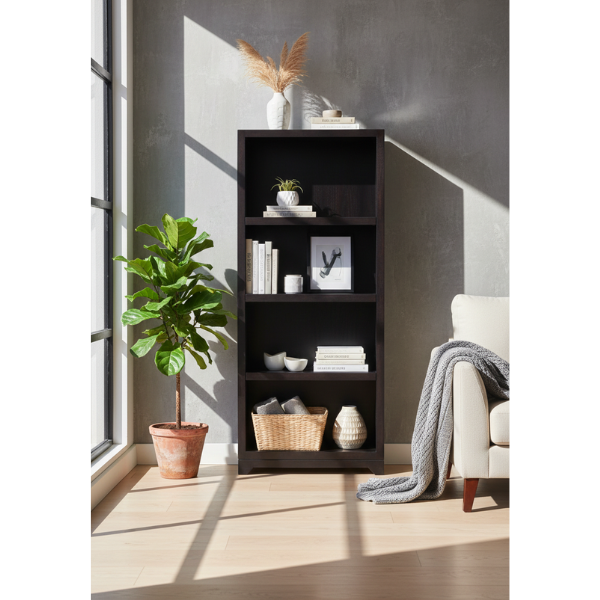 The Lampung Mahogany Bookshelf combines classic style and smart storage, featuring four elegant shelves perfect for both display and organization.