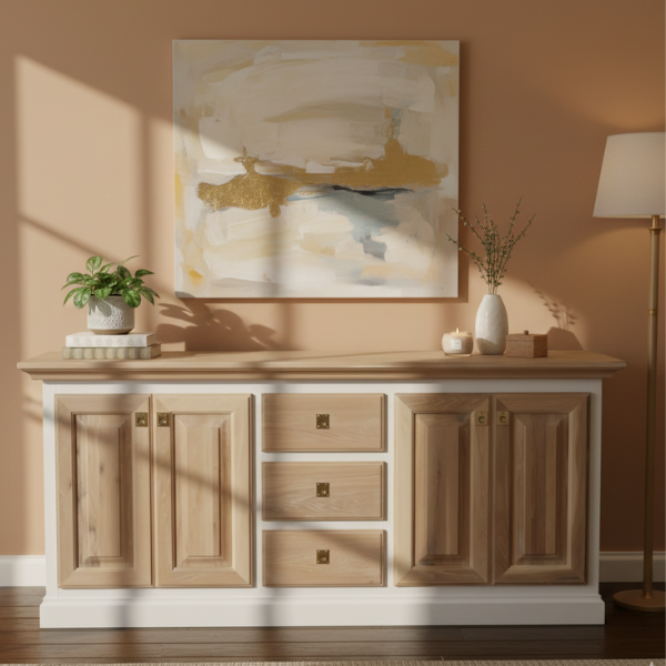 Add a touch of rustic charm to your home with the Country White and Oak Sideboard. Crafted with a durable MDF frame and a rustic oak veneer top, this 2000mm wide sideboard combines functionality and timeless style. The painted white frame features a semi-gloss finish, while the oak top showcases its natural beauty with a super-white monocoated finish. Designed with three spacious drawers and four doors, this sideboard provides ample storage for your dining, living, or kitchen space. Its low-maintenance design makes it easy to clean and perfect for everyday use.