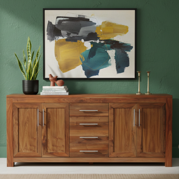 Introduce timeless elegance to your home with the Elm Kiaat Sideboard, a beautifully crafted storage solution that combines functionality with classic design. Made from premium Teak (Kiaat) wood, this sideboard features both solid and veneer elements, ensuring durability and sophistication. The sideboard is finished in a rich brown-red hue, highlighting the natural grains and unique character of the wood.