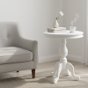 Add a touch of timeless elegance to your home with the Kasari Round Side Table in white. This side table perfectly blends modern functionality with shabby chic aesthetics. The painted finish enhances the table’s durability while preserving its natural beauty. Its compact yet versatile size 600mm diameter makes it a perfect addition to any room, whether as a decorative piece or a practical side table. With a round top supported by a central column and three sturdy legs, this table offers stability and grace.