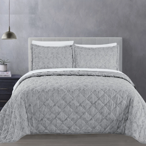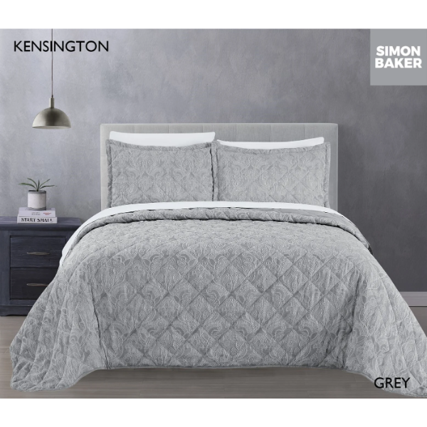 Simon Baker Kensington Jacquard Bedspread Set – Grey