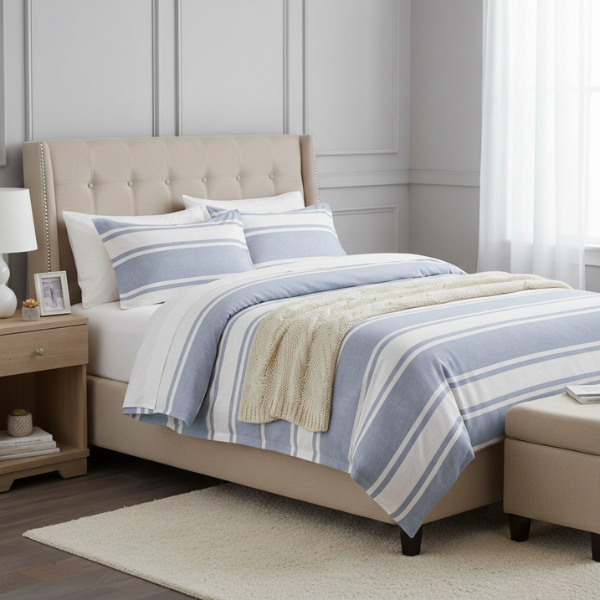 Upgrade your sleep experience with the Simon Baker Jennifer Duvet Cover Set – where timeless design meets ultimate comfort. Crafted from 100% pure cotton, this duvet set offers a soft, breathable texture that keeps you cozy all year round. The subtle striped pattern brings a refined touch to any bedroom, making it ideal for both modern and classic interiors.